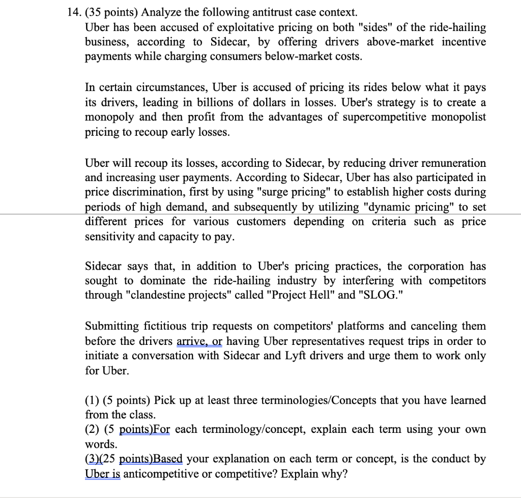 14. (35 points) Analyze the following antitrust case Chegg.com